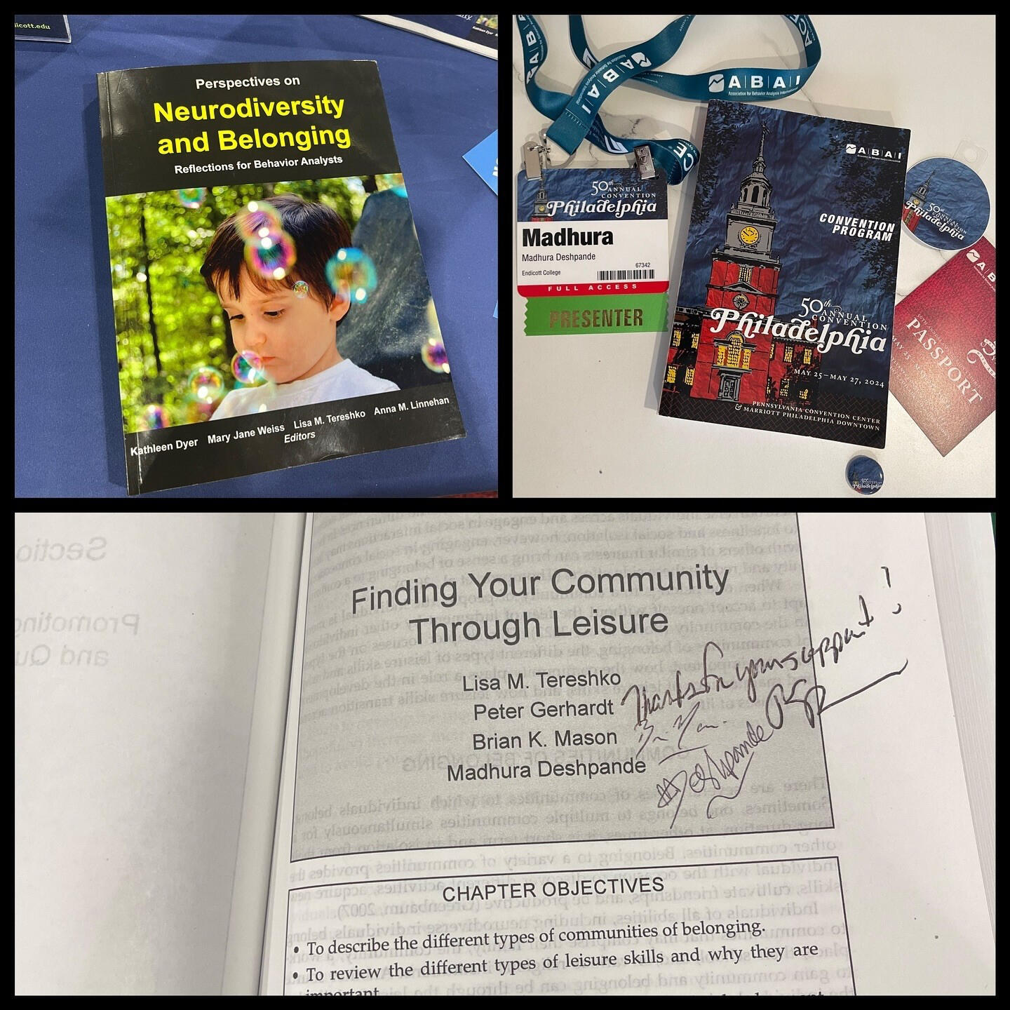 Tereshko, L., Gerhardt, P. F., Mason, B. K., & Deshpande, M. (2024). Finding your community through leisure. In K. Dyer, M. J. Weiss, L. Tereshko, & A. Linnehan (Eds.), Perspectives on neurodiversity and belonging: Reflections for behavior analysts (p. 185). Sloan Publishing